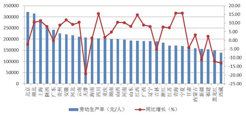 圖6 2018年上半年各地區(qū)按建筑業(yè)總產(chǎn)值計算的勞動生產(chǎn)率及增速
