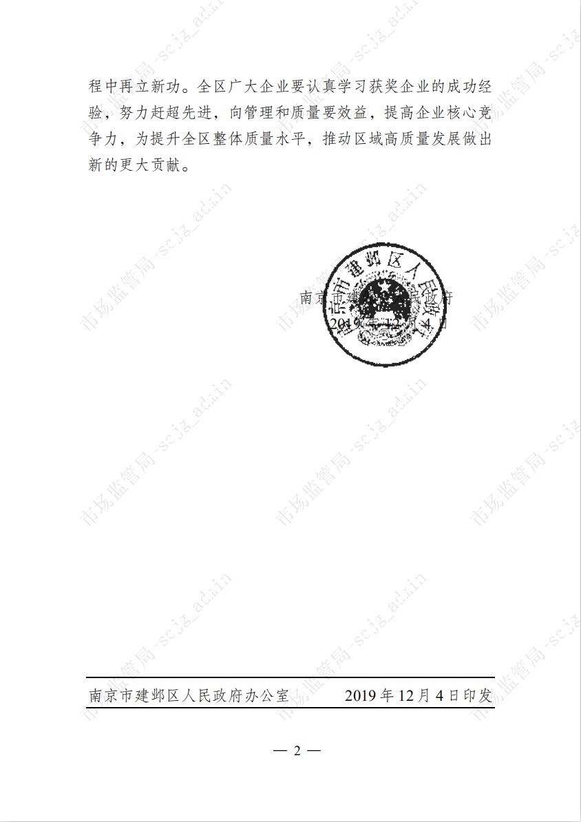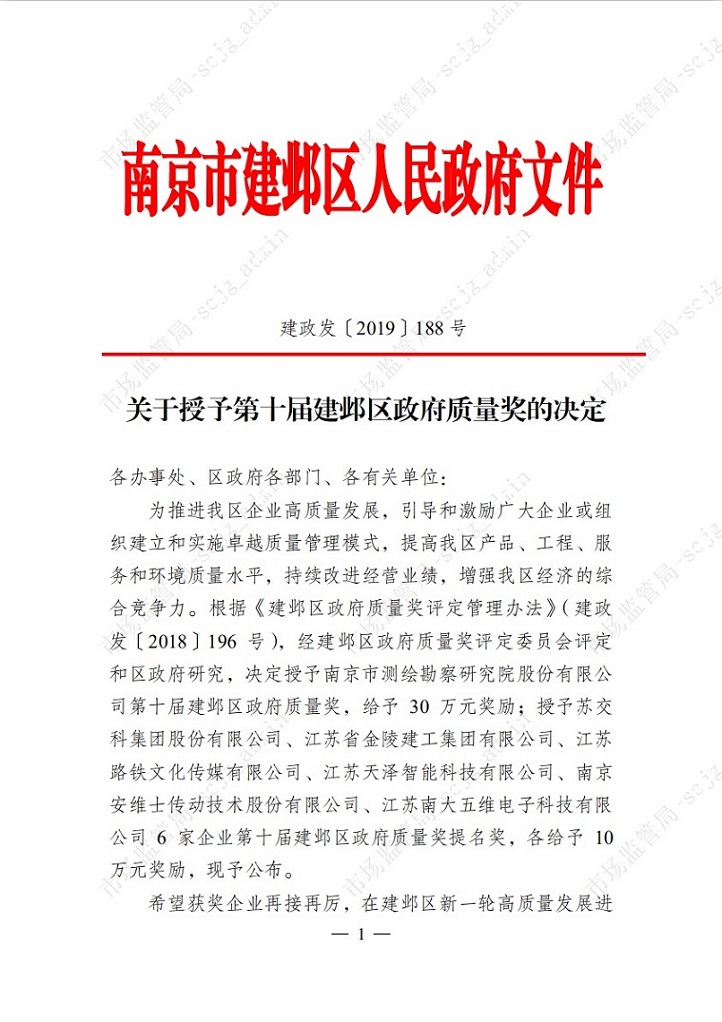 集團(tuán)公司榮獲第十屆建鄴區(qū)政府質(zhì)量獎提名獎