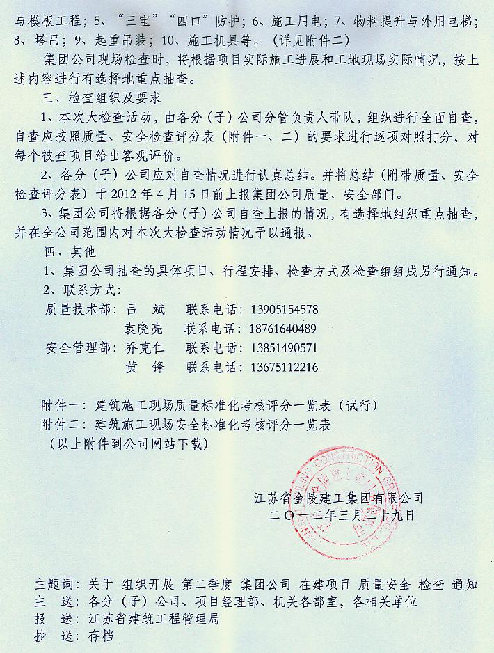 關于組織開展第二季度集團公司在建項目質(zhì)量安全大檢查的通知