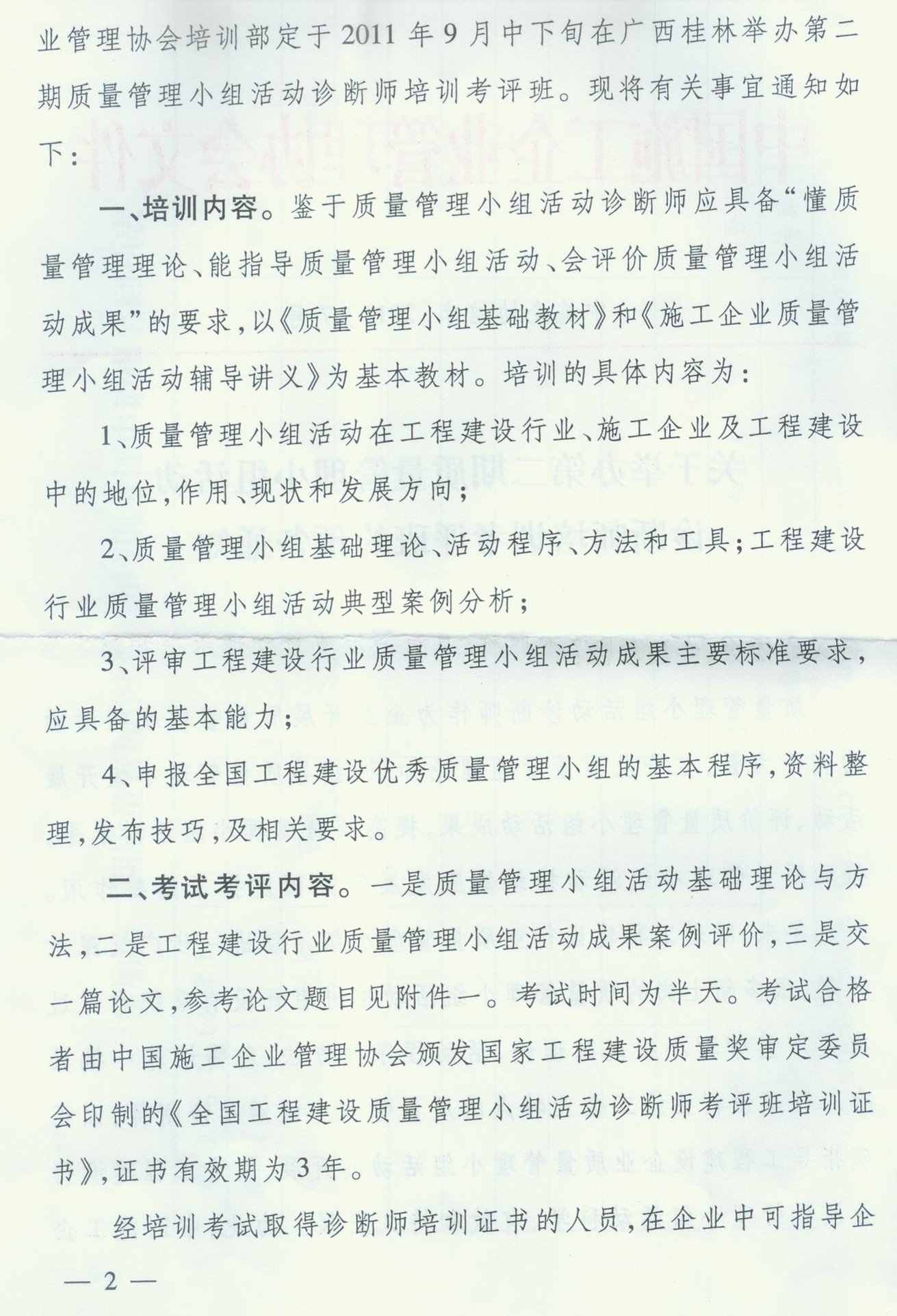 關(guān)于舉辦第二期質(zhì)量管理小組活動診斷師培訓考評班的預備通知
